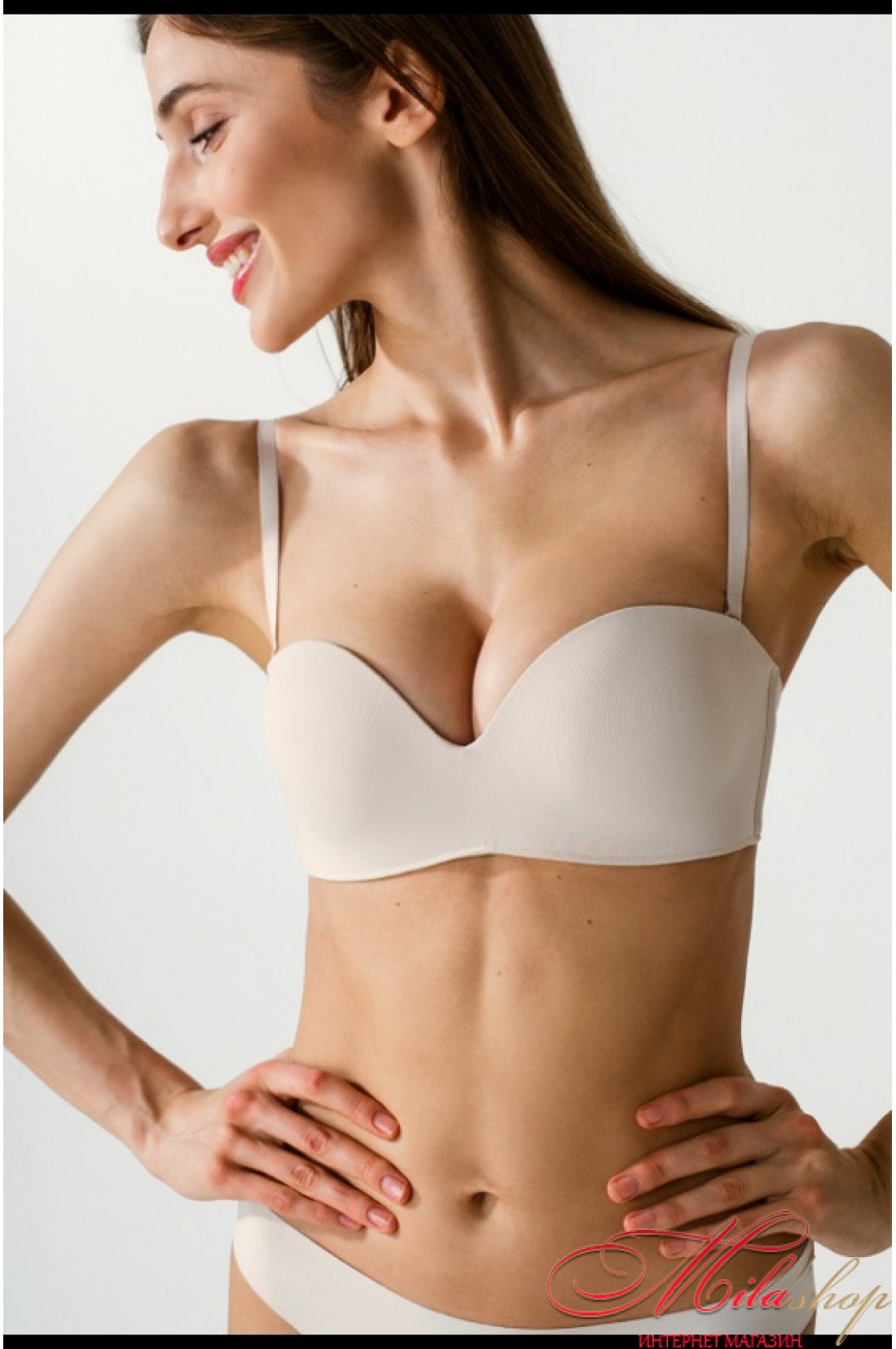 Так само через відсутність кісточки, не створюється тиск у зоні під рукою та в центральній зоні – лягає плавно. По внутрішньому краю поясної частини додатково нанесений силікон для підтримки бюстгальтера без бретелів. Ідеально сідає на малі та середні розміри.