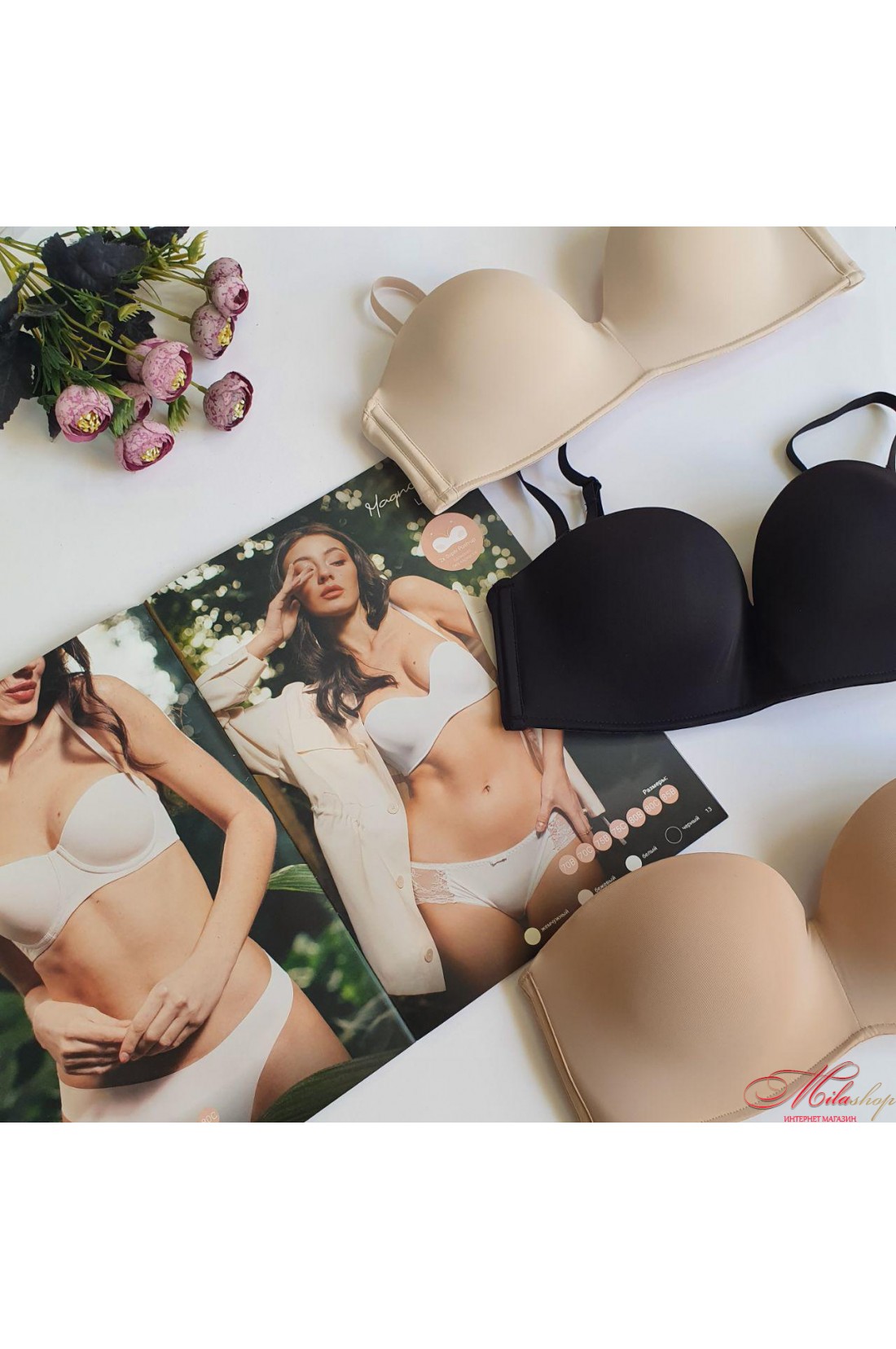 Гладкий бюстгальтер балконет без каркасів з подвійним пуш-ап Luna L1511A Magnolia