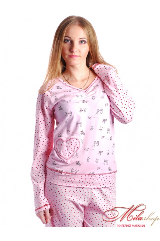 Очень удобная комфортная пижама со штанишками. 100%хлопок. Хорошо стирается, надолго сохраняет свой первозданный вид, впитывает влагу и отлично подходит для самой чувствительной кожи