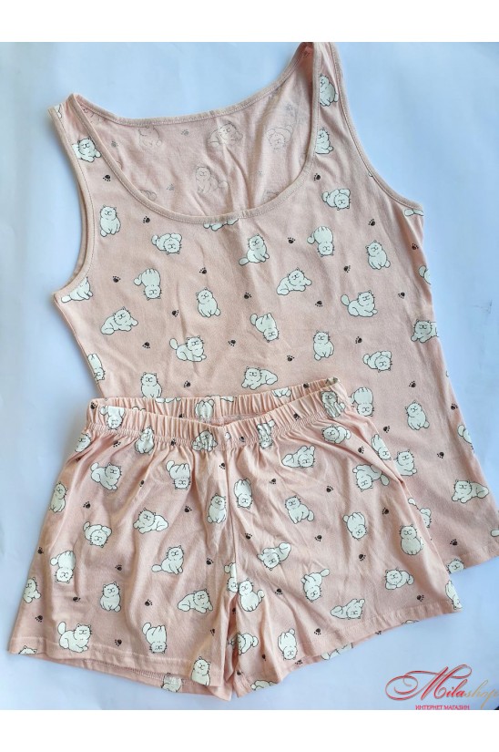Піжама складається з майки на широких бретелях та шорт вільного крою. 100% бавовна. Дуже комфортна в носінні, не вимагає спеціального догляду при пранні.