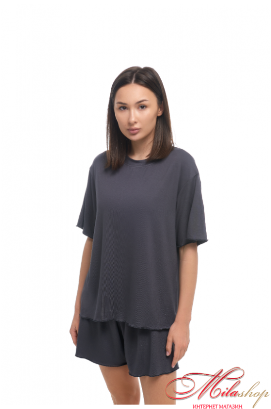 СТИЛЬНА ПІЖАМА БАЗОВОЇ КОНСТРУКЦІІ - ШОРТИ ТА ФУТБОЛКА З ВІСКОЗИ. ФУТБОЛКА МАЄ ВИСОКИЙ КОМФОРТНИЙ КОМІРЕЦЬ, КРАЇ ВИРОБІВ ОБРОБЛЕНІ ДЕКОРТАИВНИМ ТОНККИМ ШВОМ - МІКРООВЕРЛОК, ЩО НАДАЄ ЕЛЕГАНТНЕ СПАДАННЯ ТКАНИНИ ТА ІГРИВИЙ ХВИЛЯсТИЙ ЕФЕКТ.
