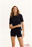 Піжама з бавовняного куліру, складається з футболки та шортів прилеглого силуету, не дивлячись на мінімалістичний дизайн, ця піжама виглядає дуже стильно та актуально, гарно підкреслює фігуру, її фішка в красивих пропорціях та іделаьній посадці. Футболка прилеглого силуету, з груглою горловино, та рукавом трішки вище ліктя. По низу зліва бавовняна нашивка з брендуванням. Шорти велосипедки, до середини стегна, по низу зліва бавовняна нашивка з брендуванням. Тканина - кулір з еластаном: еластична, не просвічує, гарно тримає форму. Рекомендації по пранню: при 30градусах, з подібними кольорами. 95% бавовна, 5% еластан.
