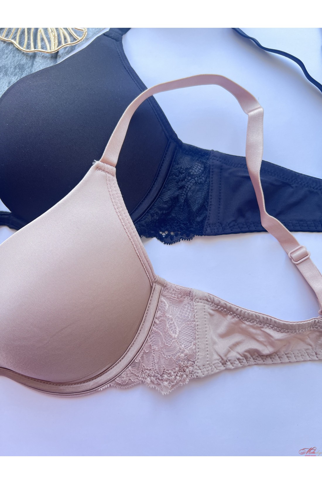 Формований бюст з невеликим push up, мереживні вставки з боків, бретелі не знімні.
