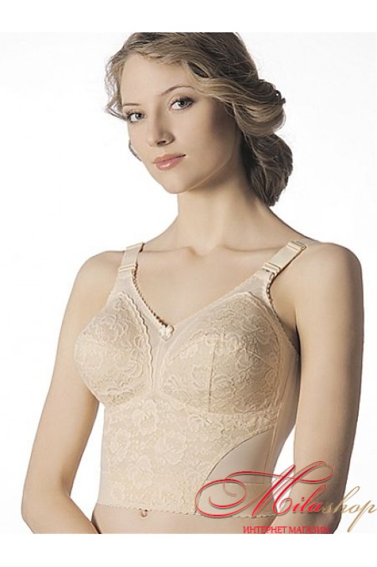 Полуграция функциональная из эластичного трикотажного полотна и неэластичного кружевного полотна, без каркасов. Нижние детали чашек и передняя деталь стана на подкладке из неэластичной х/б ткани. Упругие пластины в боковых швах. Низ обработан широкой эластичной тесьмой.