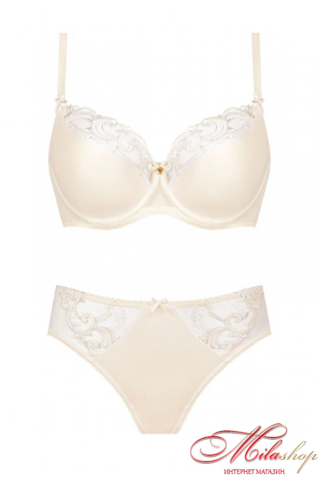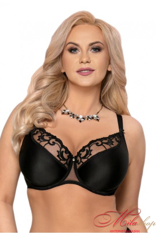 Напівм'який бюстгальтер для пишних грудей. Напіввідкрита дубльована чашка на кісточках. Верх чашки прикрашений м'яким мереживом. Регульовані бретелі. Спинка із мікросітки.