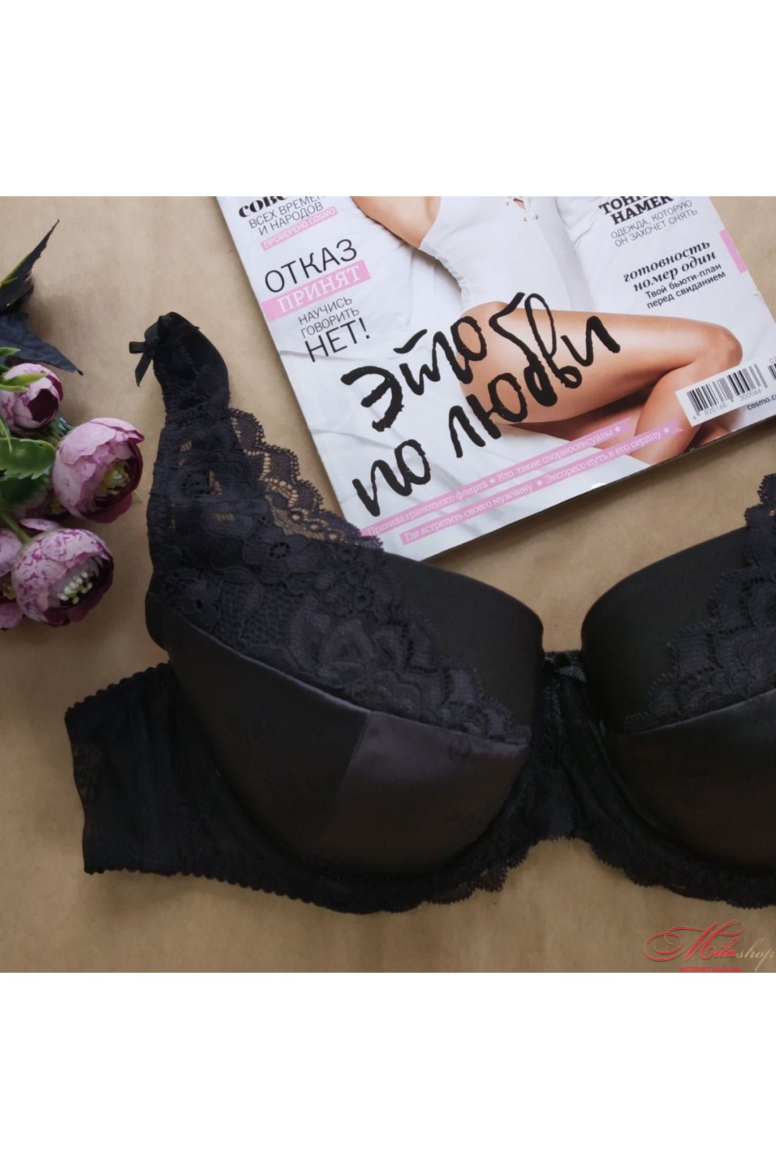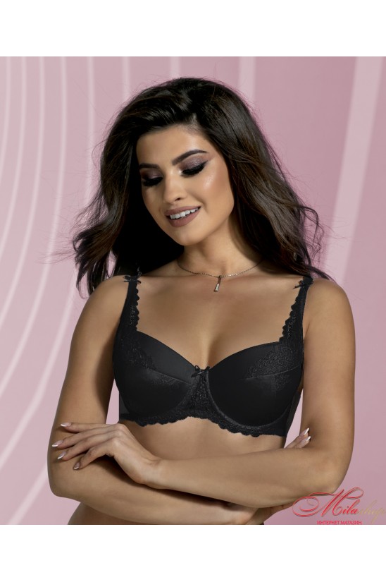 Бюстгальтер із тонким поролоном на кісточках зі знімним push-up. Верх чашки прикрашений м'яким мереживом. Регульовані бретелі. Декор у вигляді атласного бантика.