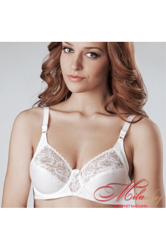 Распродажа белый 95G! Бюстгальтер из эластичного полотна, трикотажного полотна с тисненым рисунком и неэластичного кружева, на каркасах. Чашки с боковой корректирующей деталью.
