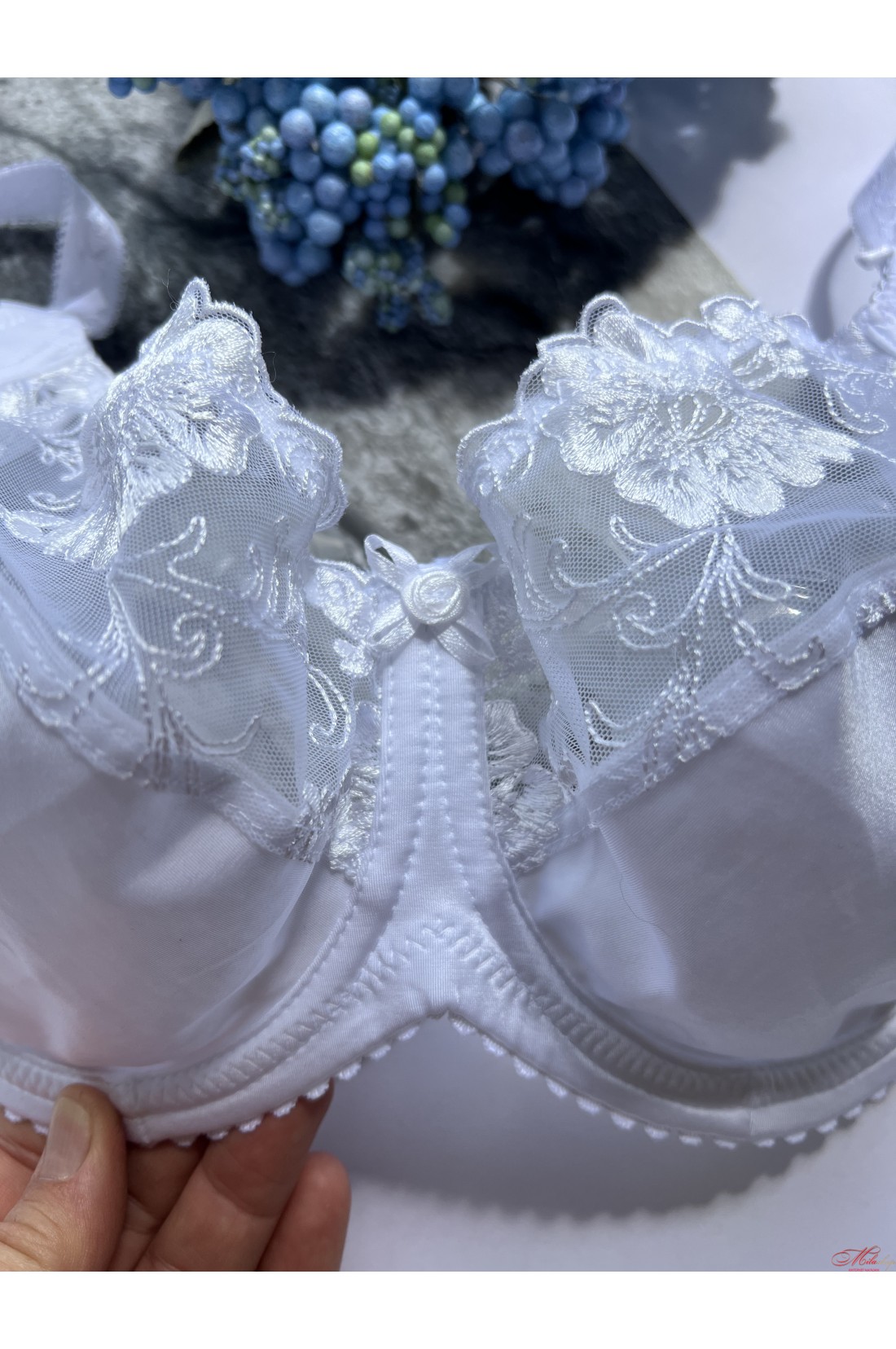 Бюстгальтер з м'якою чашкою, на каркасах, прикрашений гарним мереживом. Бюстгальтер ідеально сідає по фігурі, наголошуючи на красі природних форм.