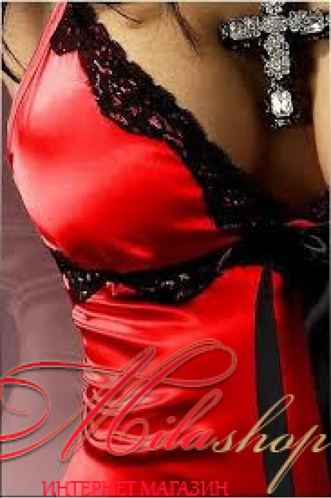 Женственный комплект из атласа: сексуальная ночнушечка и стринги. Декор - контрастная отделка кружевом и атласной лентой. Изысканный подарок!