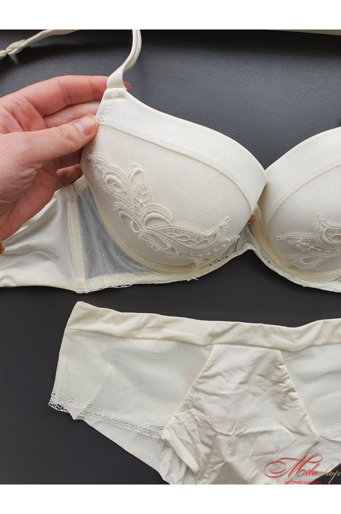 Комплект Anabel Arto 8161-011 в цвете шампань со съемным пуш-ап на чашку С. Пуш-ап выполнен из съемной подушечки!