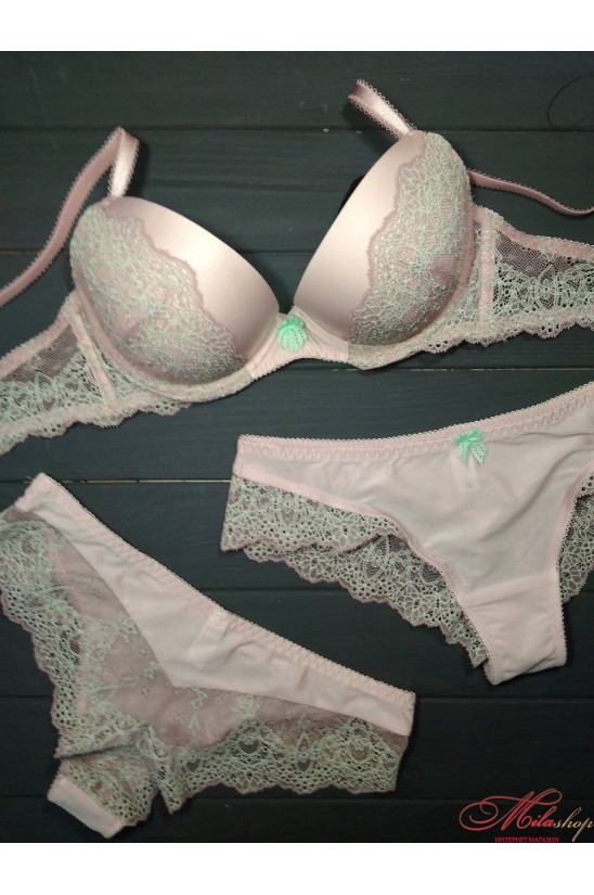 Бюстгальтер пуш-ап, с хлопком изнутри. Трусики бразилиана с низкой линией талии.