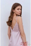 Нічна сорочка із легкого невагомого сатину. Мереживне оздоблення по краях, декоративна спинка, тонкі бретелі регулюються по довжині, без застібок.