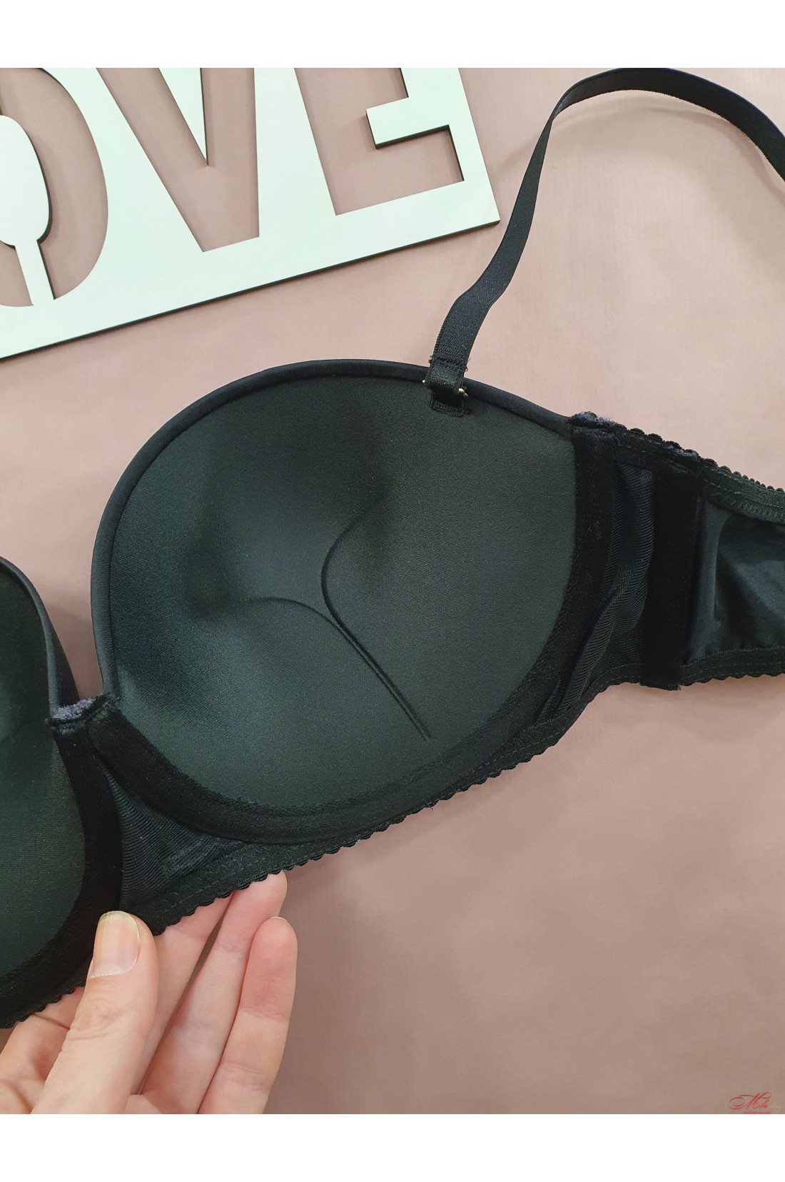 Розкішний бюстгальтер балконет виконаний з м'якого гладкого полотна, чашки з пуш-ап. Бретели відстібаються, регулюються по довжині. Відмінно підтримує груди, можна носити без бретелів.