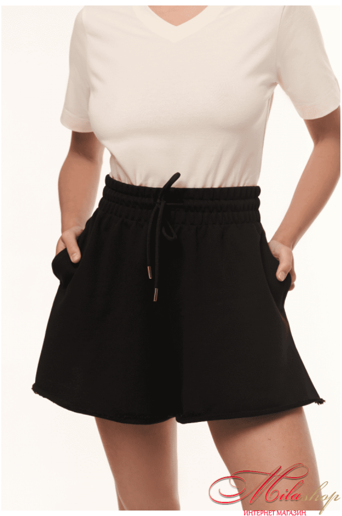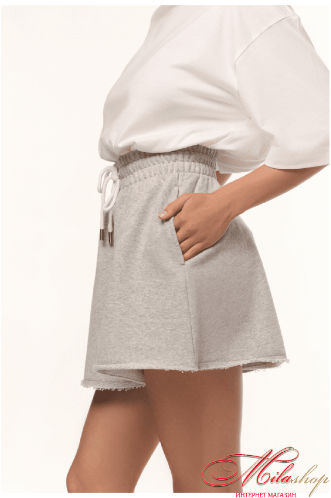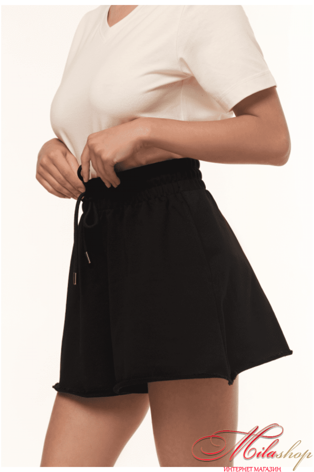 Стильні шорти трапеція. Тканина - м'яка тринитка. Тримають форму, легкі та комфортні. Візуально виглядають як спідничка. 100% бавовна.
