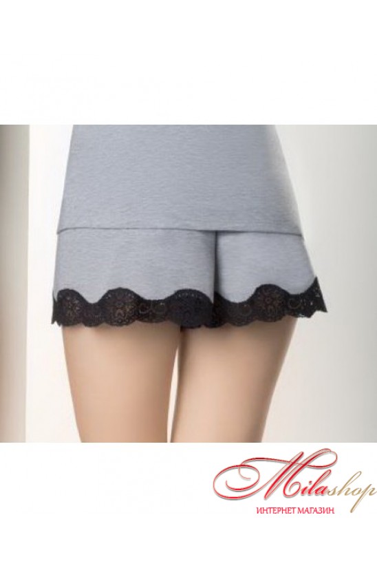 Шортики от ТМ Marsana цвета меланж, декорированы черным кружевом. Удобные, практичные, изготовлены из приятной дышащей ткани.