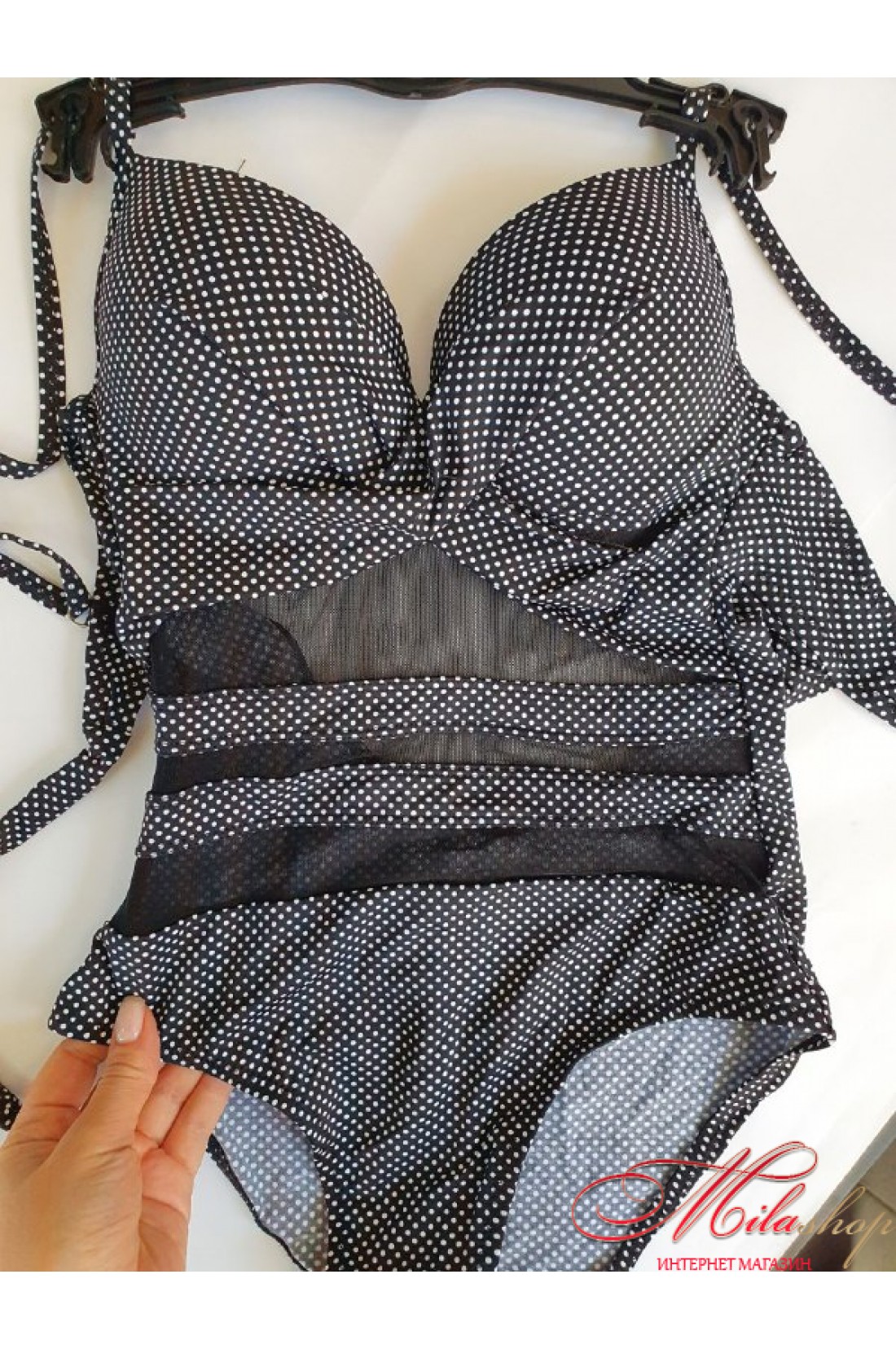 Сплошной купальник с формованными чашечками. Бретель регулируемая. спереди декорирован сетчатыми вставками.
