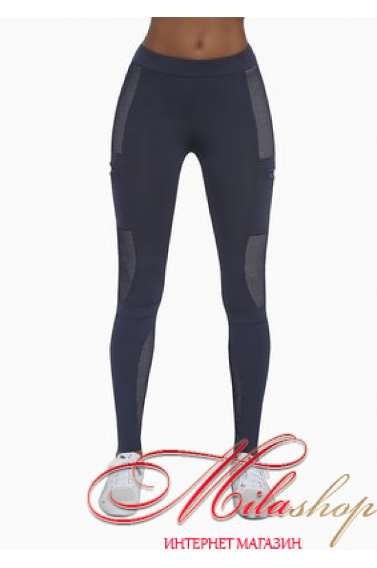 Спортивные лосины синего цвета, с оригинальными вставками по бокам. Высокое качество ткани,идеально облегают фигуру и красиво смотрятся на теле.