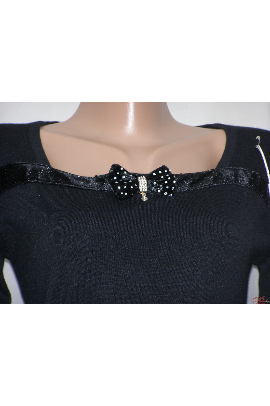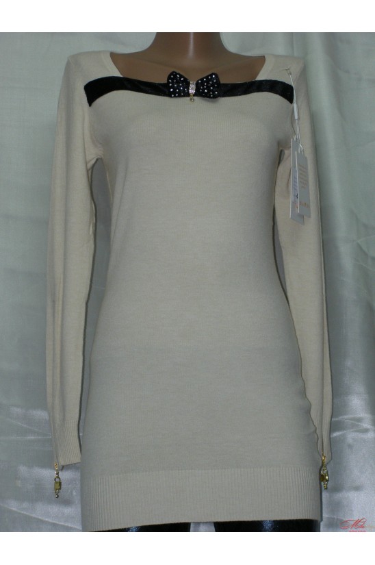Теплая туника. Очень нежная и приятная к телу. Спереди украшена атласной лентой и бантиком черного цвета. Рукава декорированы металлическим бантиком.