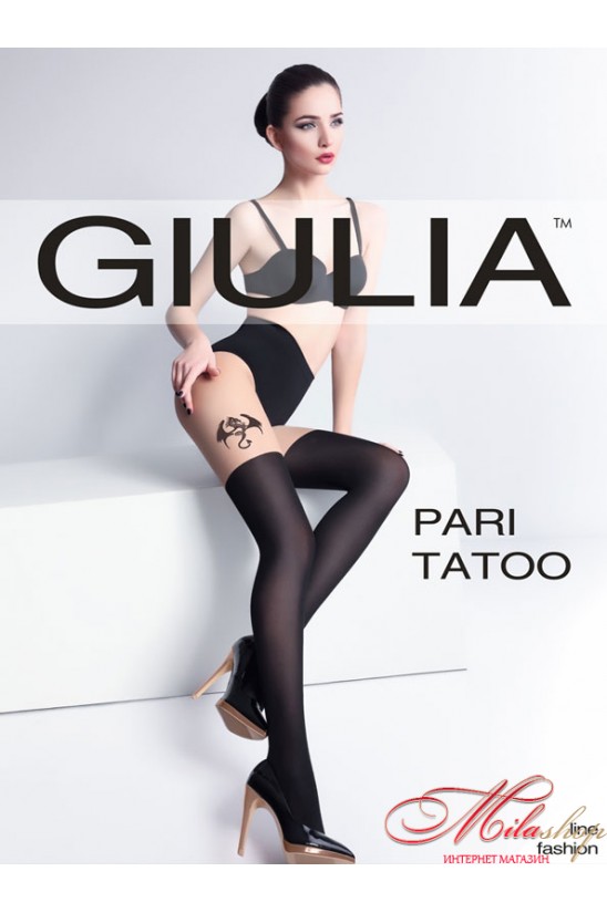 Стильные колготки 60 DEN фантазийной коллекции, украшенные имитацией чулок c *тату* в виде дракона.