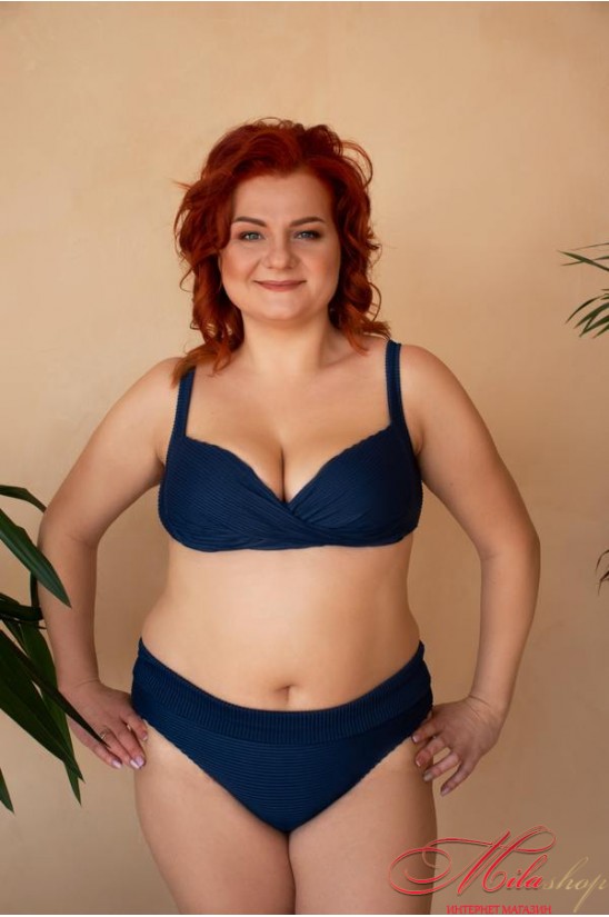 Стильний роздільний купальник для пишних грудей. Модель виконана із красивої фактурної тканини. Топ із драпіруванням, з формованою чашкою на тонкому поролоні. Бретели не відстібаються, регулюються по довжині. Класичні плавки із підвищеною посадкою.