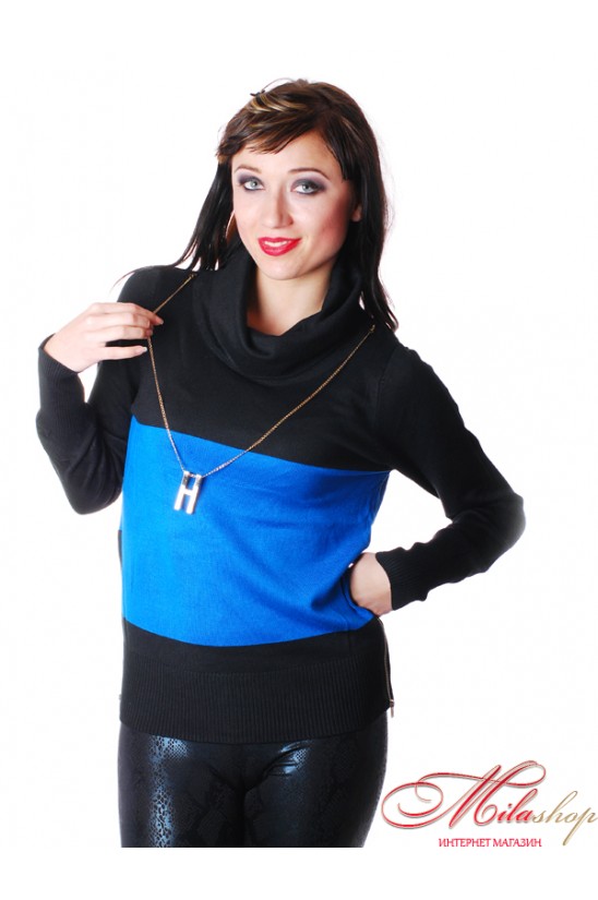 Молодежный свитер с воротником "хомут". Имеет украшение в виде цепочки с эмблемой Hermes. Украшение съемное. Сбоку регулируемая змейка, которая позволяет носить свитер девушкам с любым типом фигуры.