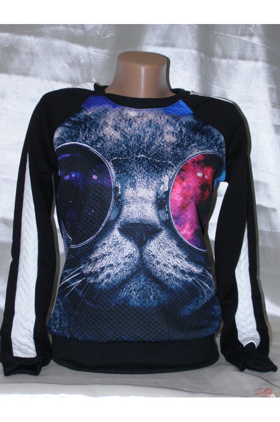 Модный, молодежный свитшот. Утепленный. Хорошо сочетается с джинсами и спортивными штанами. Нежный и приятный к телу. Украшен 3D рисунком "кот в очках'