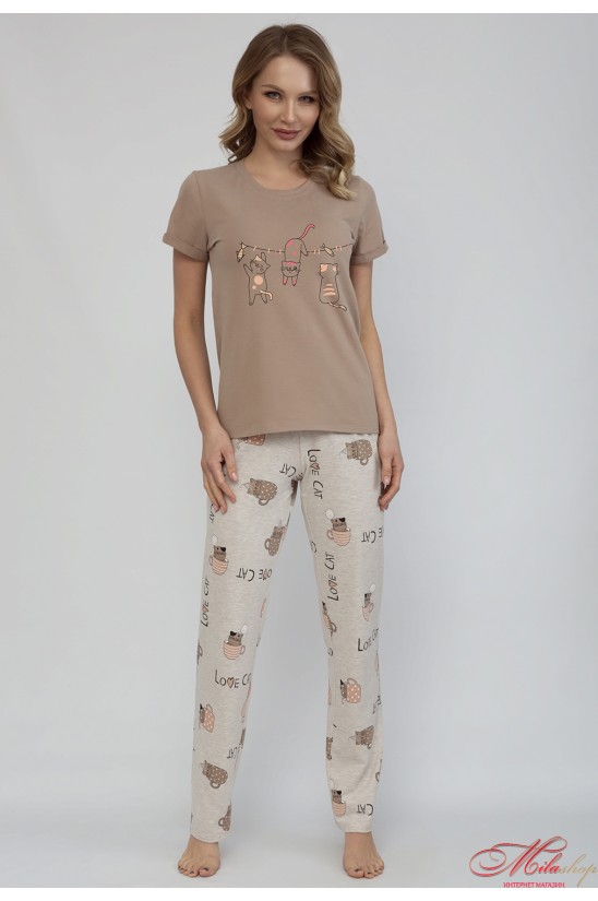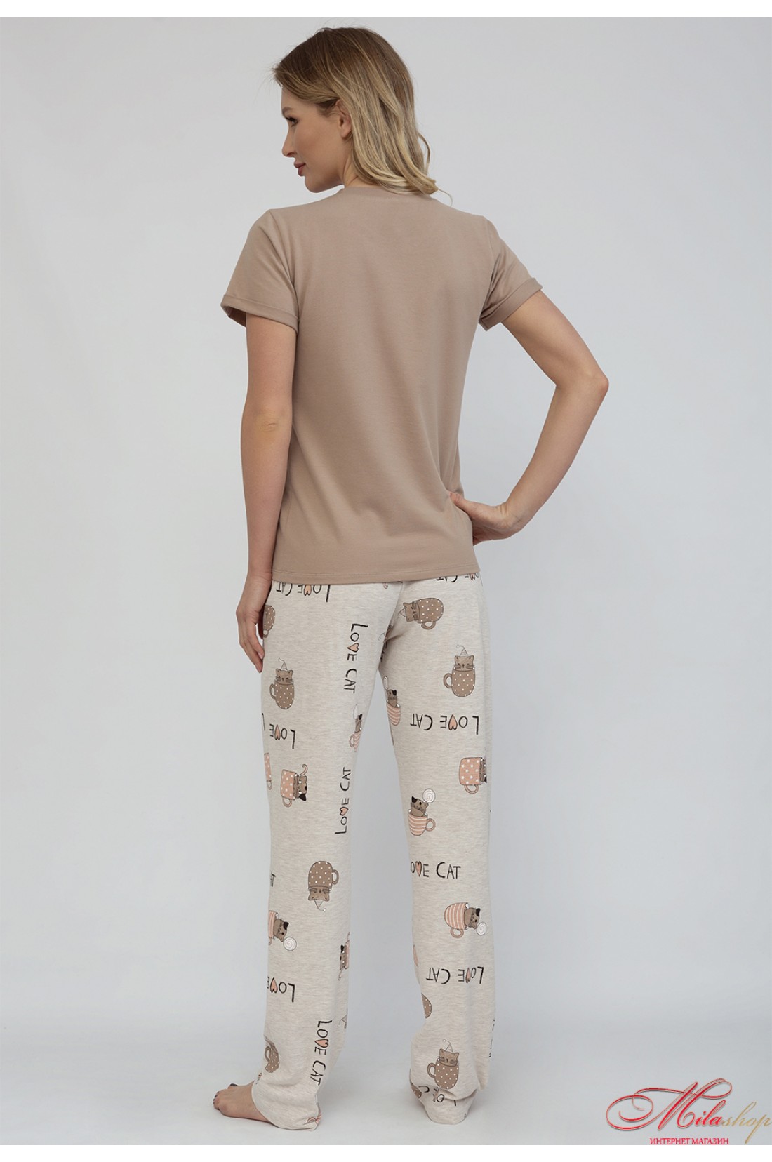 Піжама складається з футболки та штанів. Також може служити як домашній костюм для будинку, який завжди під рукою. Ця справжня насолода для тіла – м'яка натуральна тканина бавовна та красиві відтінки, які підібрані з особливою ретельністю. Комплект виконаний з акцентом на природність та натуральність.