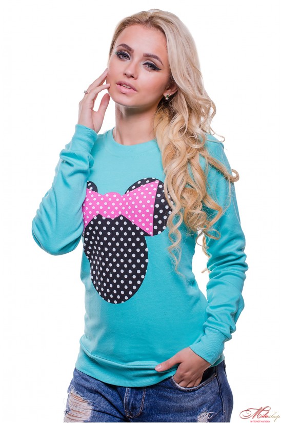 Толстовка с принтом Минни с бантом в ментоловом цвете