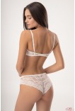 - Базові трусики-бразиліана із заниженою лінією талії. Виконані з мікрофібри та мережива. Наполовину прикривають сідниці та підкреслюють їх форму. Позаду вертикальний шов. Бавовняна гігієнічна ластівка.