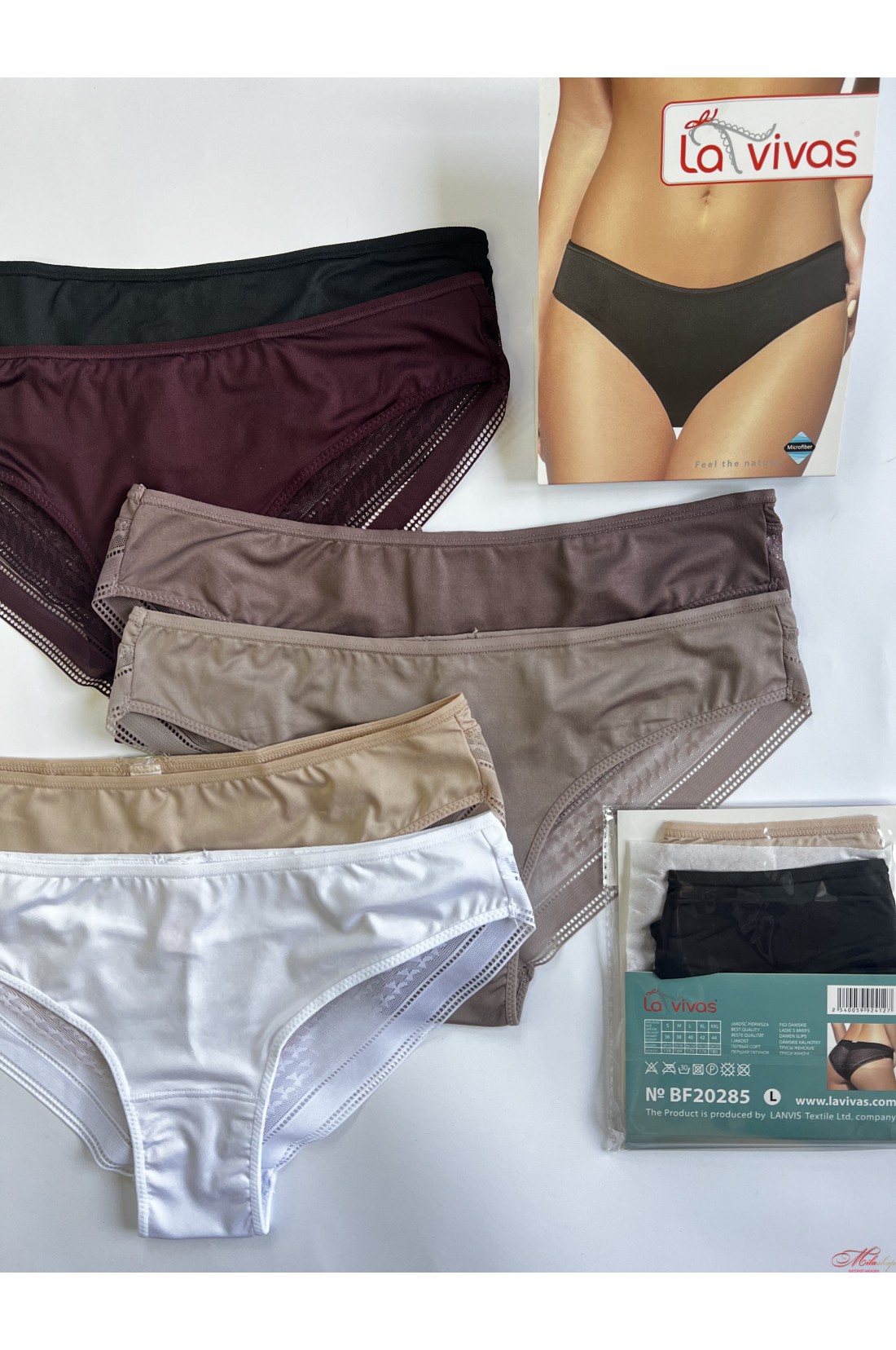Ультратонкі трусики бразиліана з мікрофібри та мережива La Vivas 20285