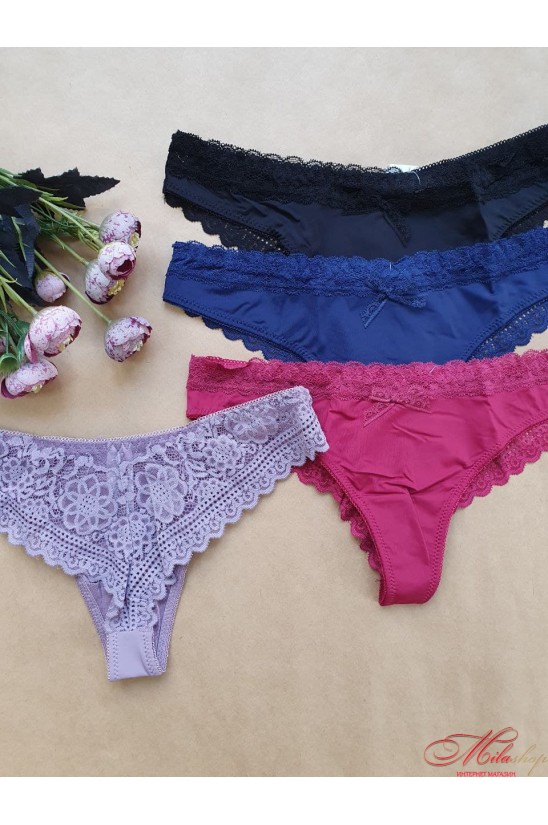 Трусики-бразилиана из микрофибры с кружевом Annajolly 60229
