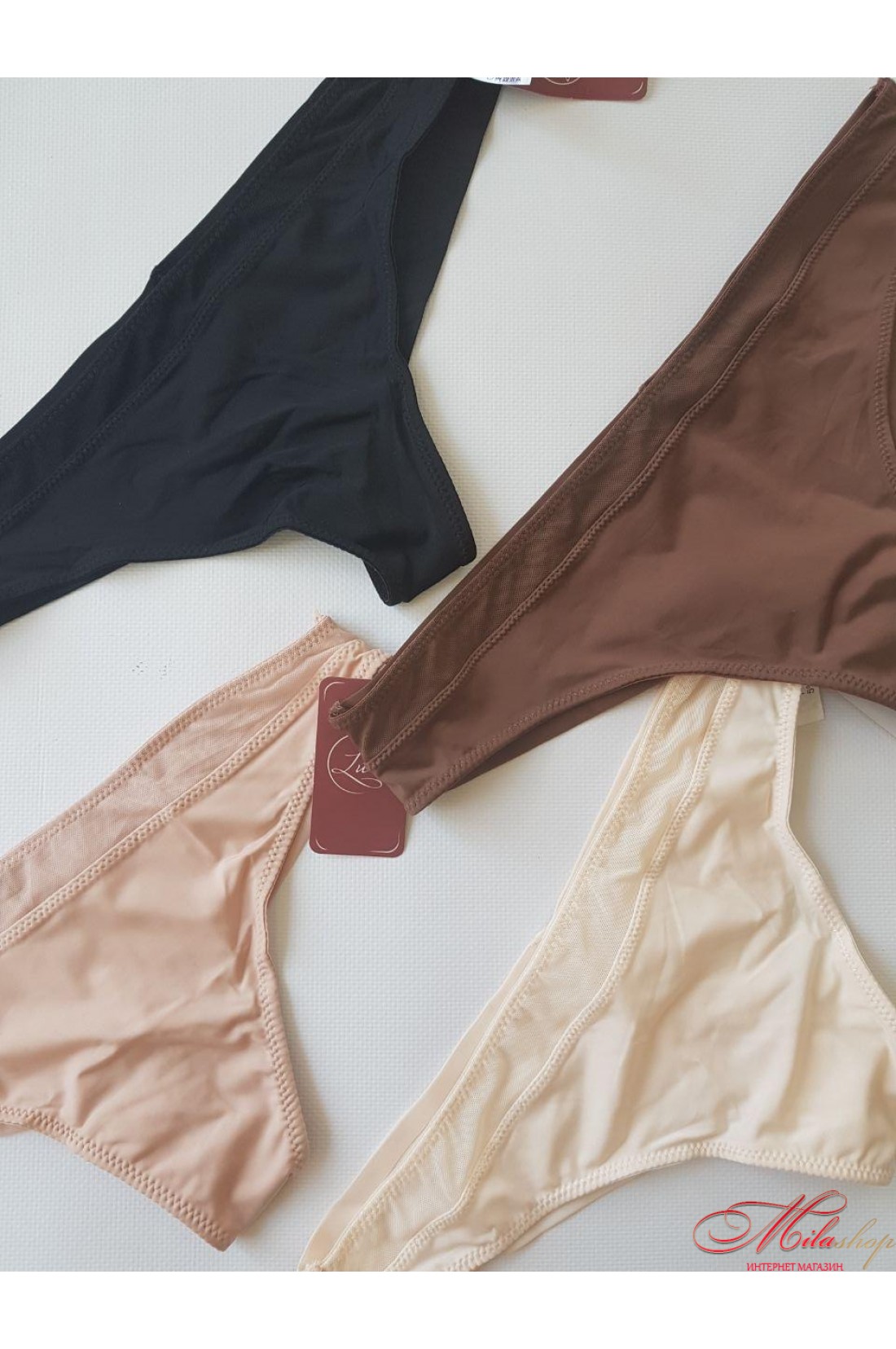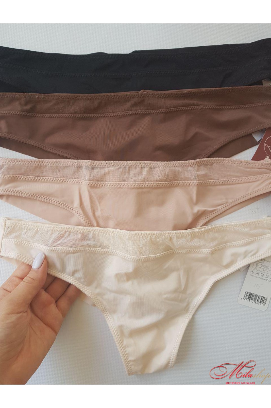 Бразиліана трусики з низькою лінією талії. Виконані з еластичного трикотажного полотна (мікрофібри) та еластичного сітчастого полотна.
