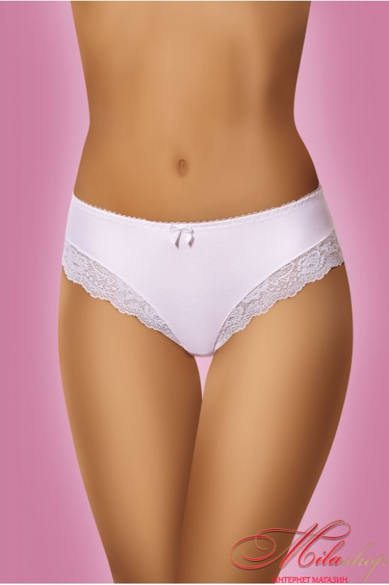 Женские трусики с высокой линией талии. Выполнены из мягкой микрофибры. По нижнему краю украшены элегантным кружевом. Спереди декорированы бантиком.