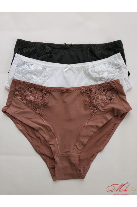 Трусики из микрофибры. Спереди по бокам вставки кружева. Модель полномерная со средней посадкой.