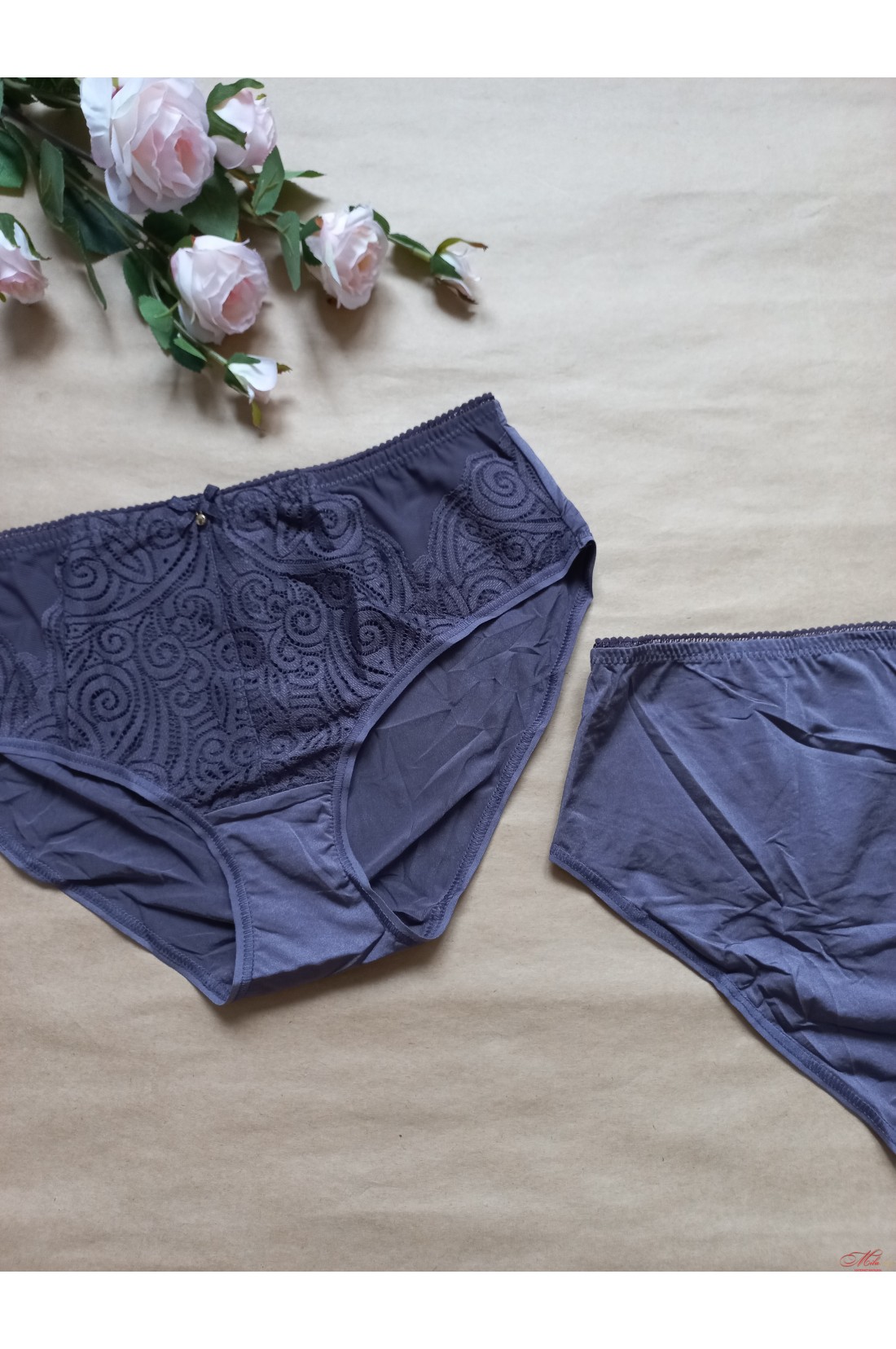 Трусики сліп із мікрофібри у поєднанні з мікросіткою та мереживом. Прекрасно сідають, наголошуючи на фігурі.