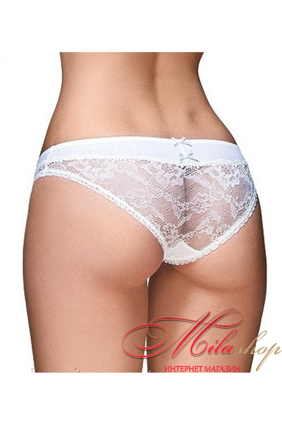 Роскошные трусики с низкой линией талии. Выполнены из элегантного кружевного полотна. Передняя и задняя часть трусиков украшены атласными бантиками.