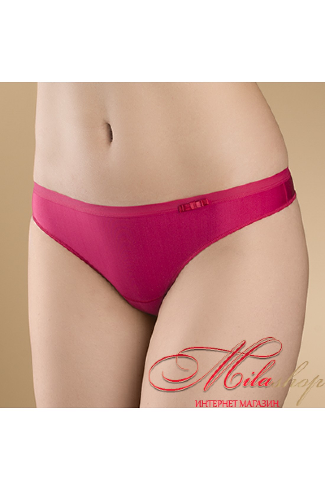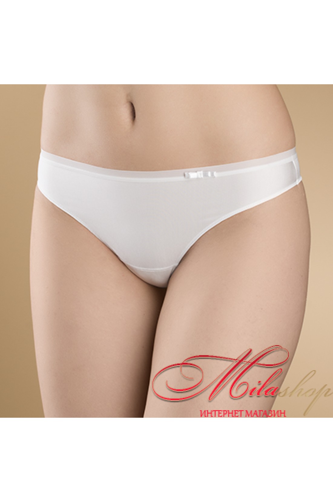 Трусы "стринг" с низкой линией талии. Нижние срезы обработаны плоским швом для незаметности под одеждой. Деликатное тонкое полотно с блеском дарит максимальный комфорт в носке. Отделка - декоративная делекатная тесьма из органзы по верхнему срезу, стильный бантик.