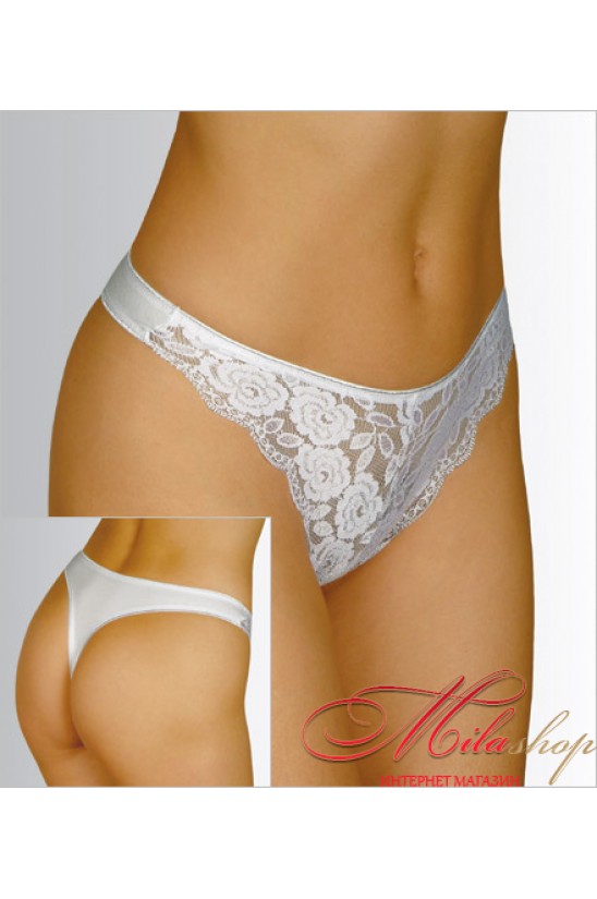 Женские трусики-стринги со средней линией талии. Выполнены из элегантного кружева с цветочным узором.