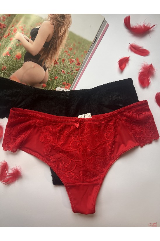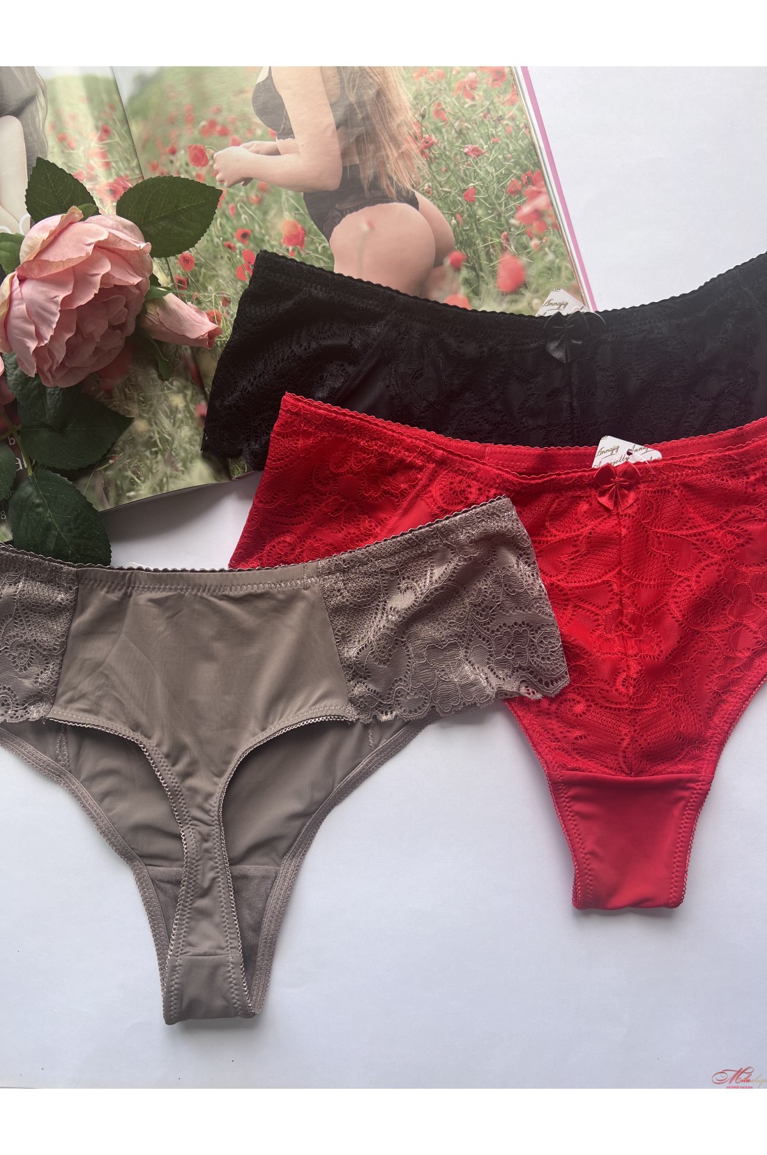 Стрінги із середньою лінією талії. Виконані з мікрофібри та мережива.