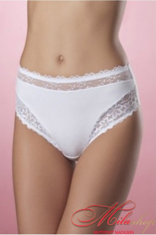 Трусики из эластичного хлопкового полотна. Отделка - эластичное кружево по верхнему и нижним срезам передней детали. Для комплектации возможно использовать бюстгальтеры 66050 и 66051.