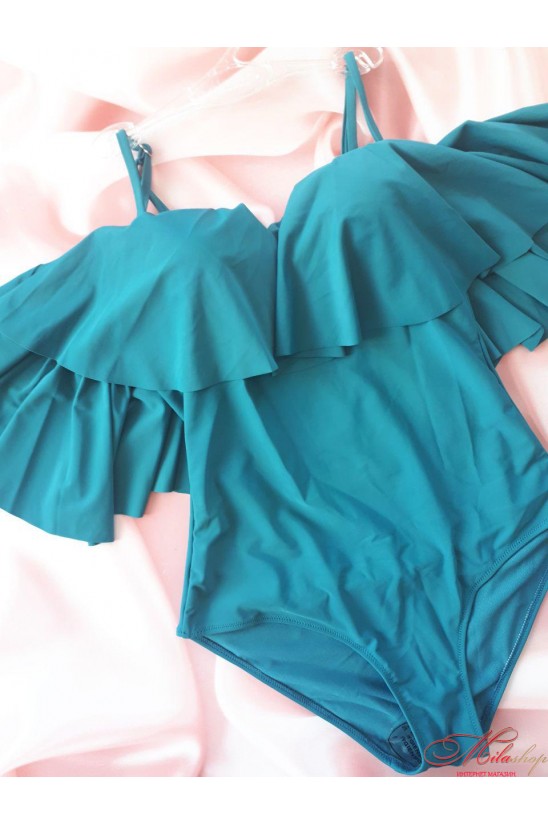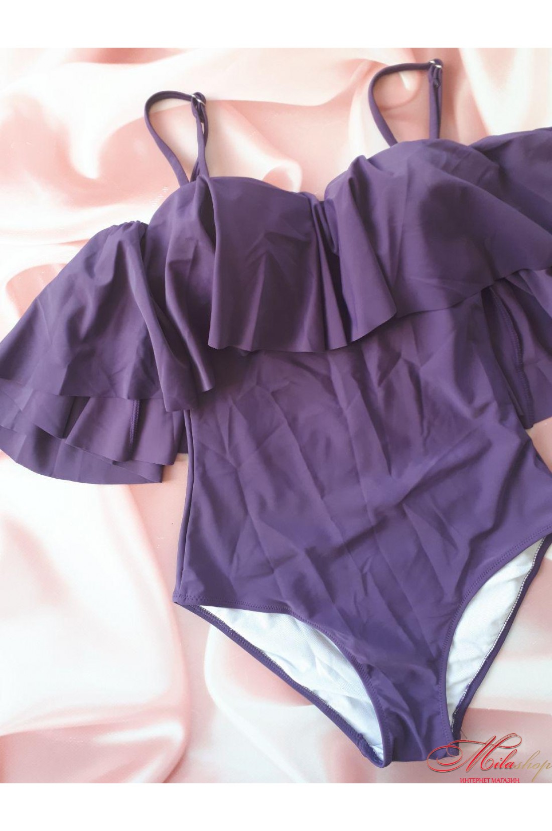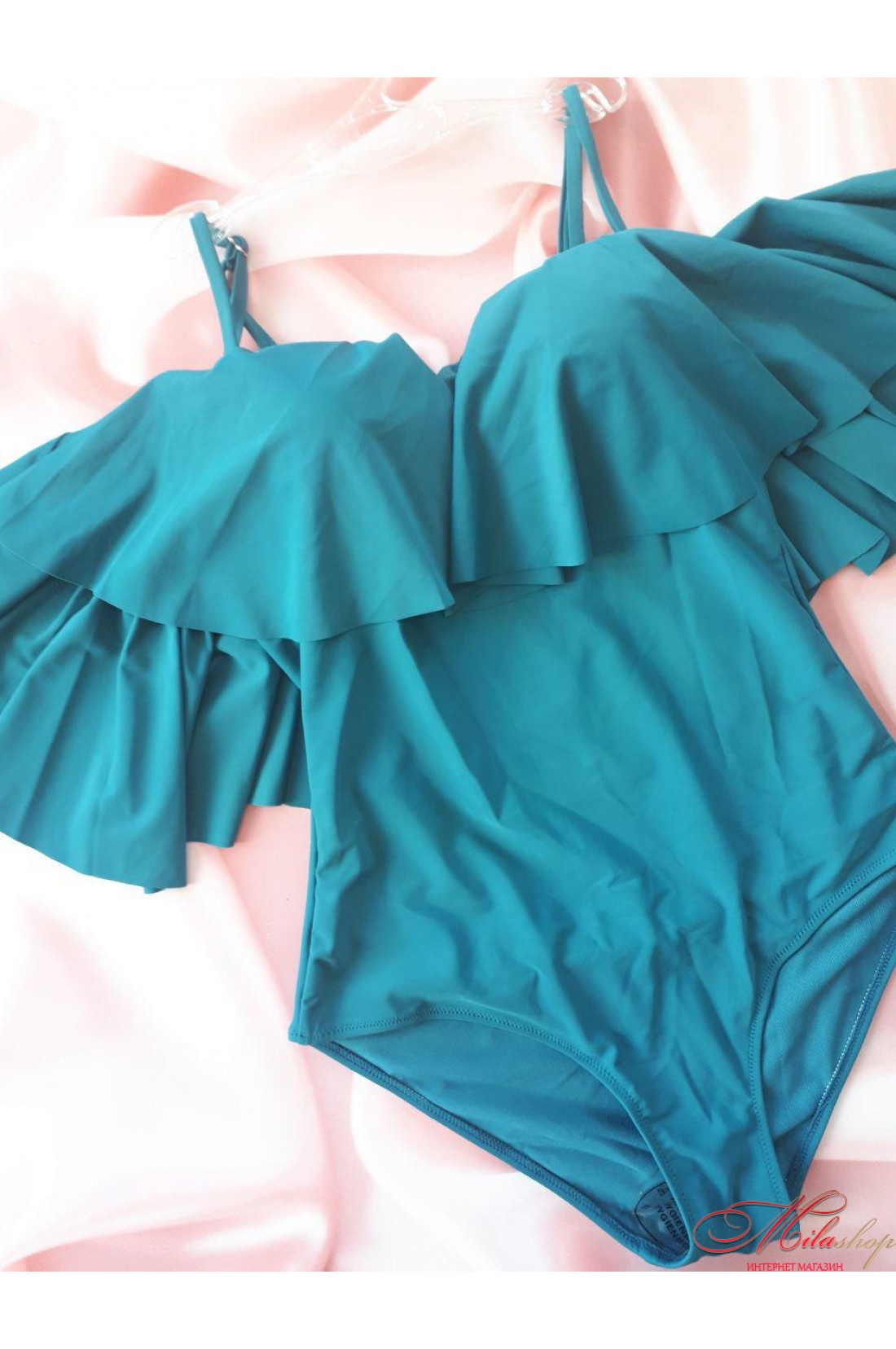 Эффектный сдельный купальник с пуш-апом, рюшей на лифе, которую можно надеть как рукава, так и накинуть на плечи.