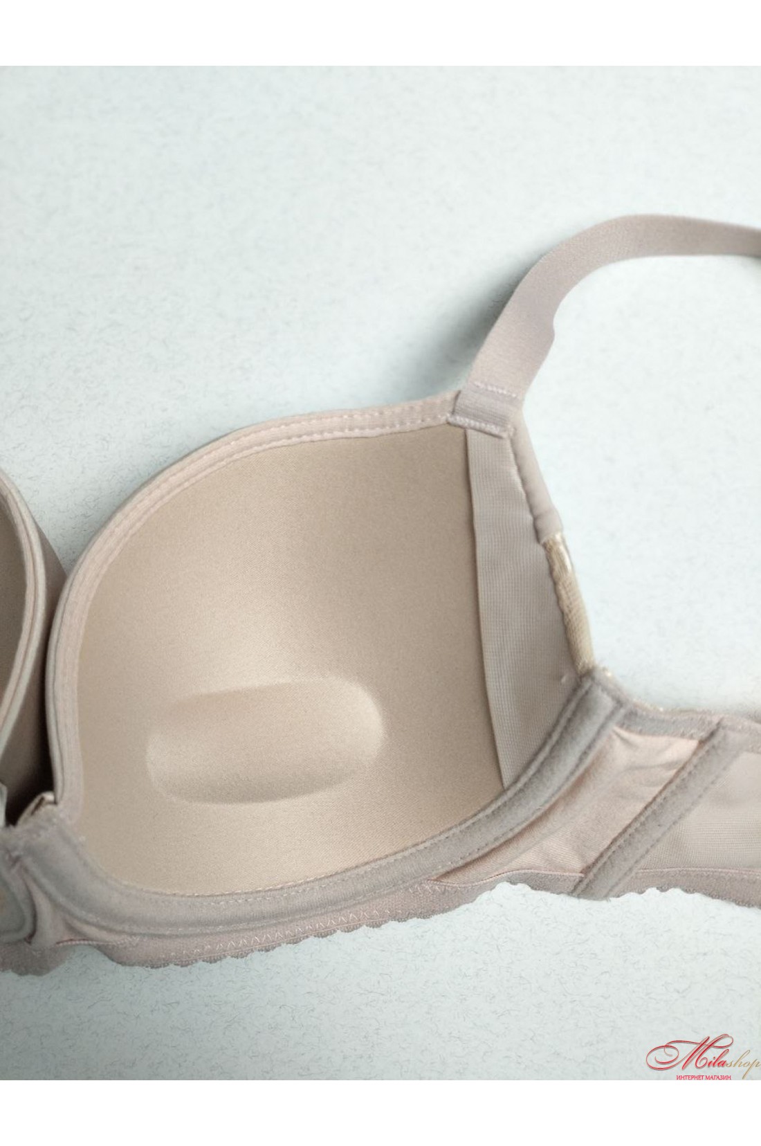 Прекрасний бюстгальтер балконет із формованими чашками із тонкого поролону з пуш-ап. Незнімний бретель, регулюється по довжині. Чашки піднімають груди, роблячи груди привабливішими, утворюючи красиву зону декольте.