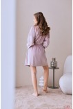 Велюровий халат з м'яким коротким ворсом з блиском, опущена лінія плеча, прямі довгі рукави, крій на запах дозволяє регулювати посадку по фігурі. Зав'язується на талії поясом.