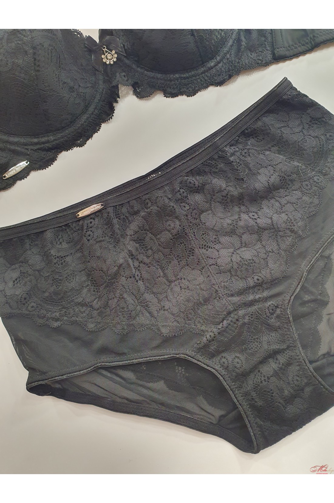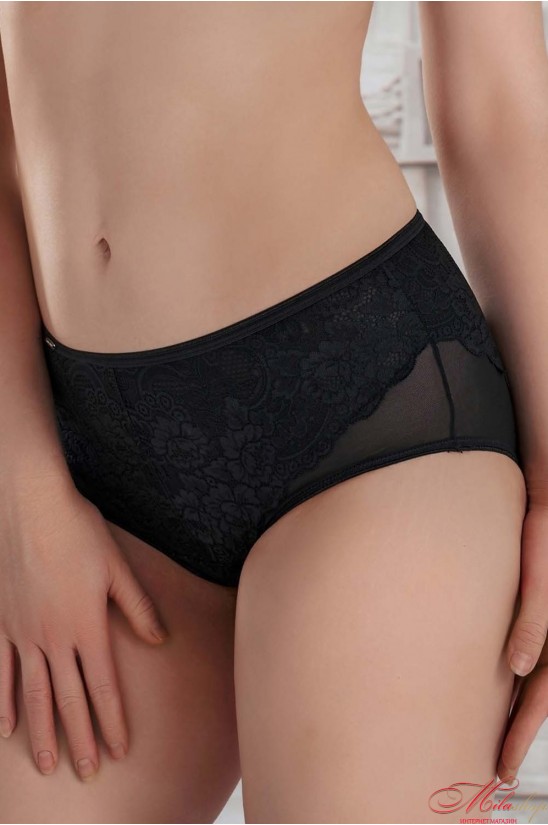 Високі трусики сліпи з мережива та мікросіточки з ефектом утяжки Lanny Mode 51826 чорні