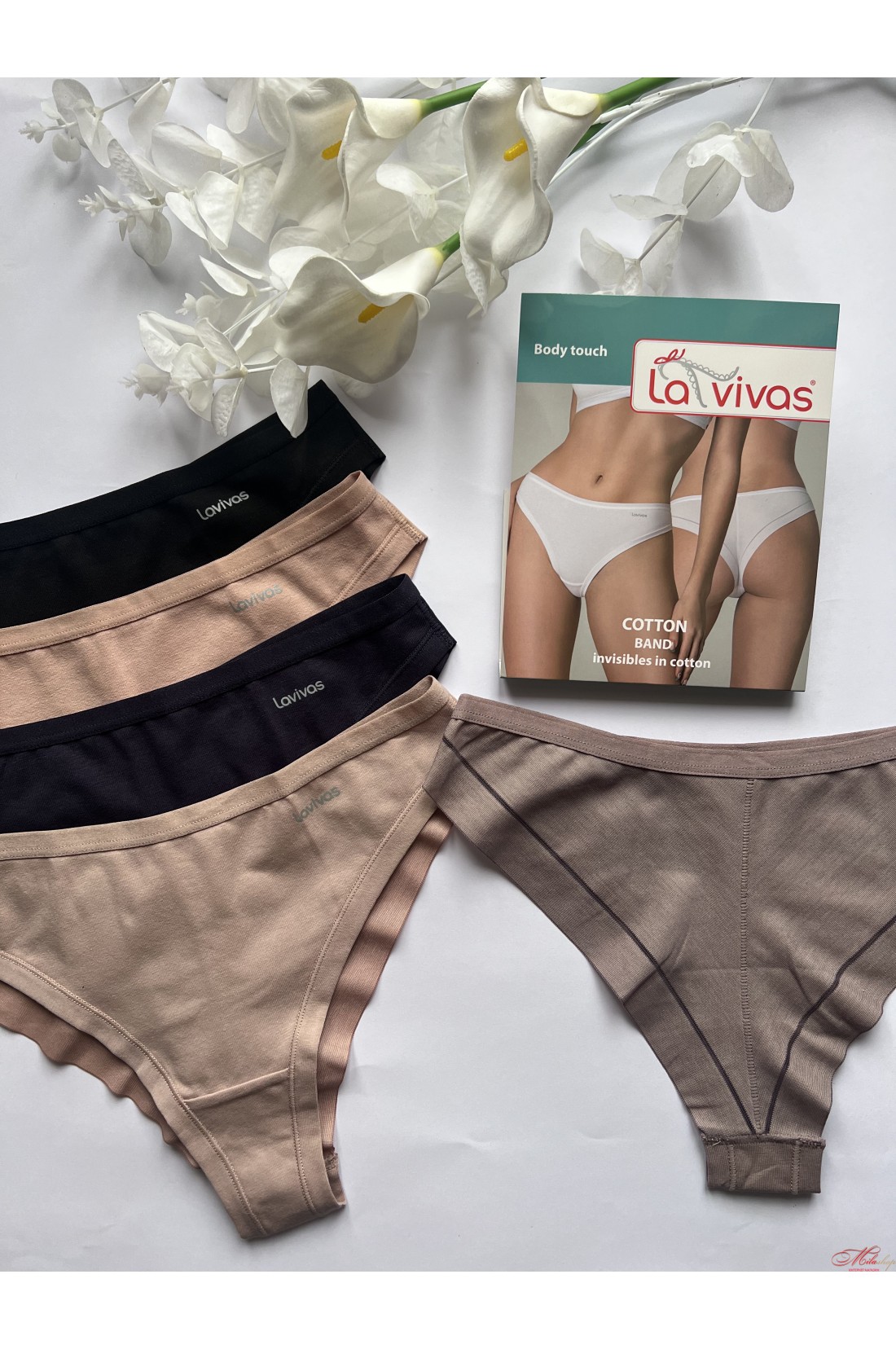 Трусики бразиліана La Vivas виконані з бавовни, ззаду бавовна з тонким з сітчастим полотном. Із середньою лінією талії. Дуже комфортні та м'які, ззаду моделюючий шов.
