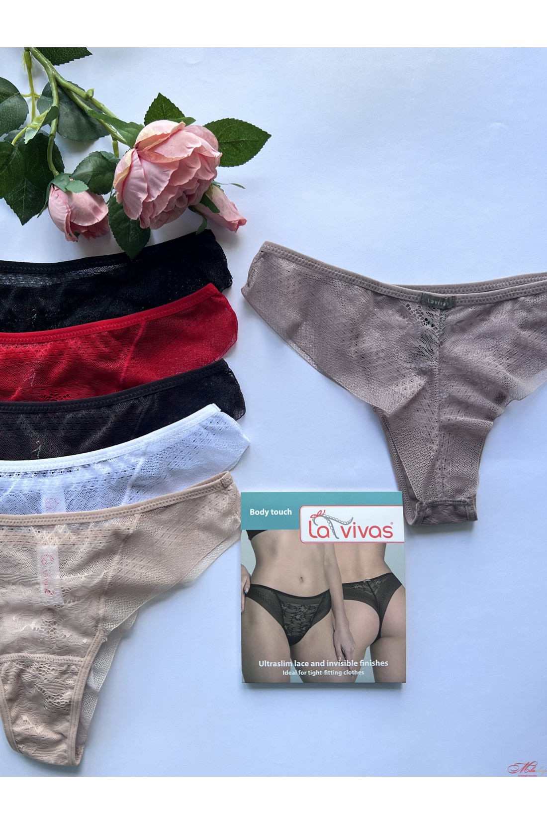 Трусики бразіліана La Vivas виконані з тонкого мережива. Із середньою лінією талії. Дуже комфортні та м'які, ззаду моделюючий шов.