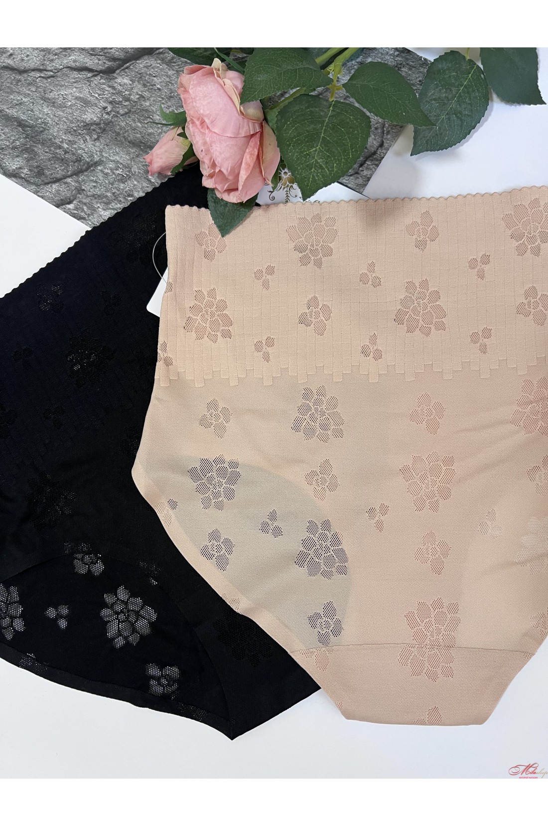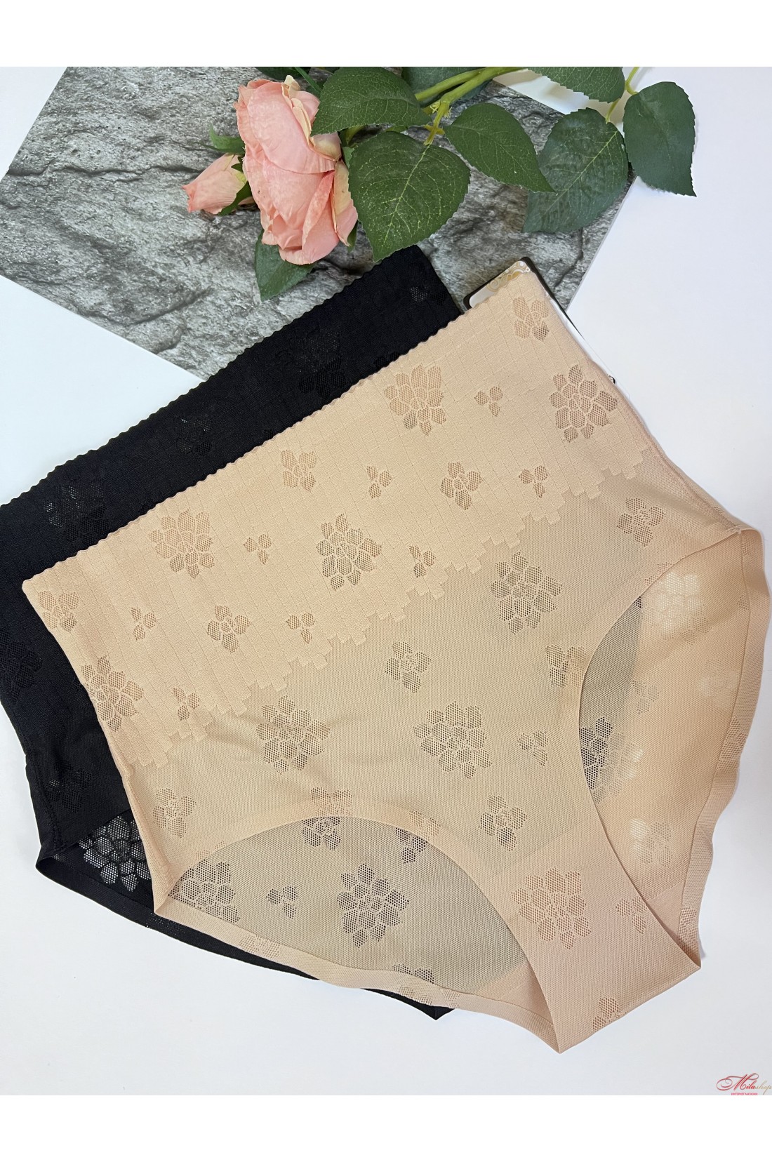 Відмінні безшовні трусики сліпи з високою посадкою, з ефектом утяжки. Виконані з м'якої тканини із цікавим принтом.
