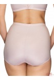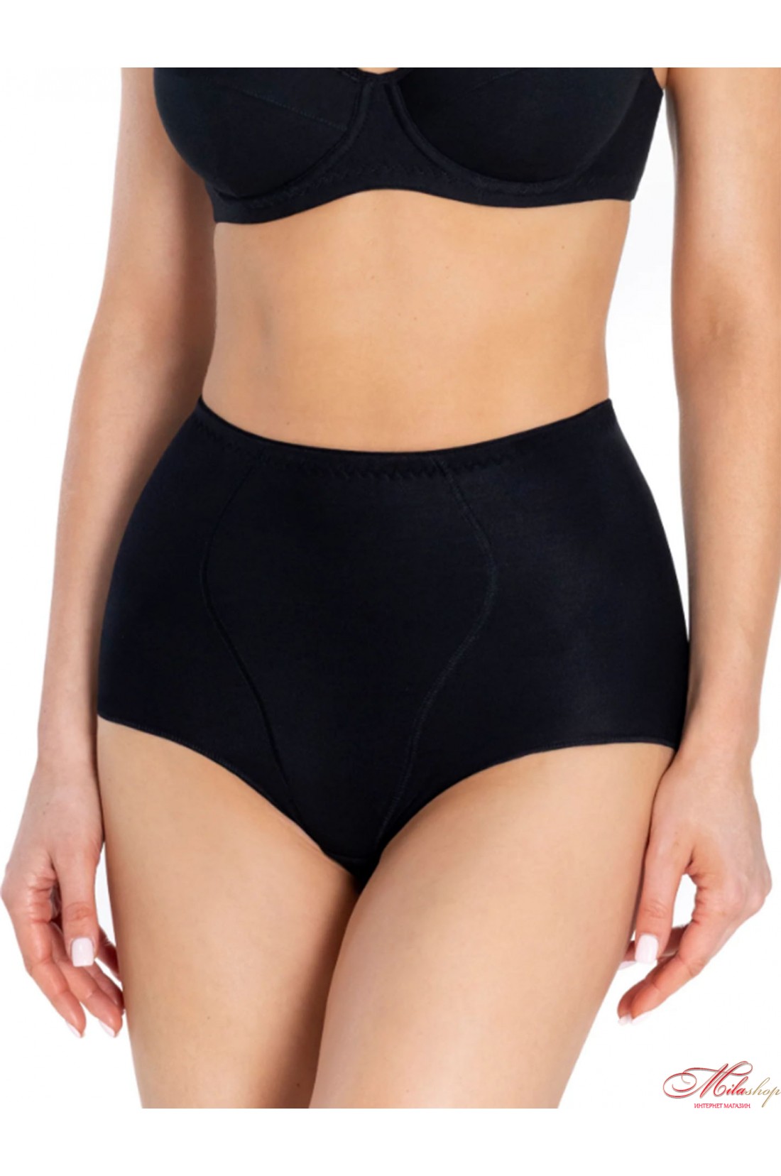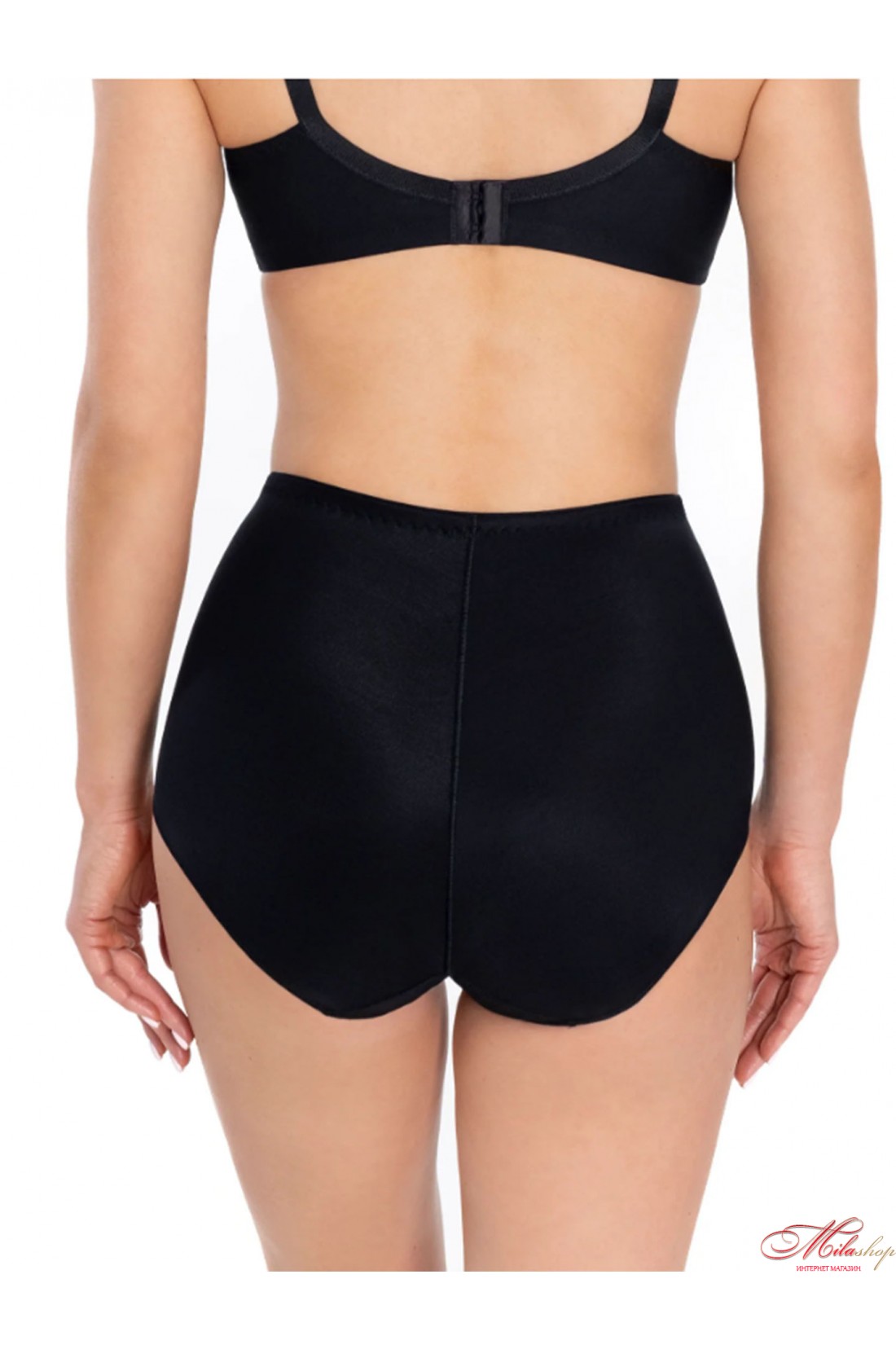 Утягуючі труси з високою посадкою. Середній ступінь утяжки. Центральна частина посилена для корекції недоліків в області живота. Трусики оброблені технологією плоского шва. Структура шва стає більш еластичною і має більшу зносостійкість. Стягувальна білизна, в якій використовують плоскі шви, не натирає і не подразнює шкіру, тому що краї тканини з'єднані стик у стик.