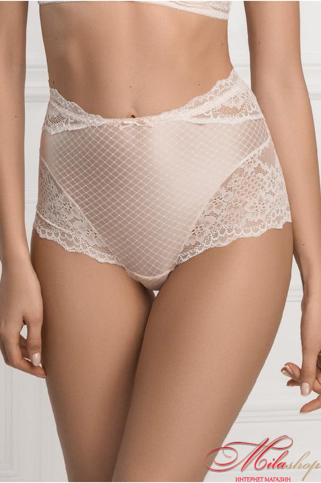 Трусики з високою лінією талії. Виконані з принтованого французького полотна, блискуче. Завдяки високій посадці приховую недоліки фігури. Декоровані вставками з елегантного мережива.