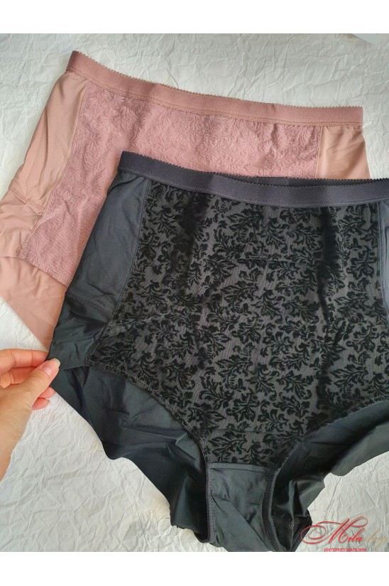 Высокие трусики с широкой резинкой. Передняя часть из плотной эластичной ткани, благодаря которой трусики имеют утягивающий эффект. Задняя деталь из бесшовной микрофибры.